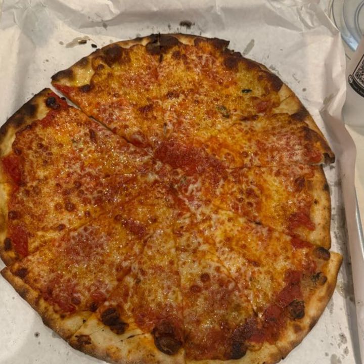 Restaurant, ambience, vibes, staff were all great. Original tomato pie with mozzarella was just fine. A little bland but got better once you add parm and some salt. Wanted to love it bc it had everything going for it, but it was just alright.